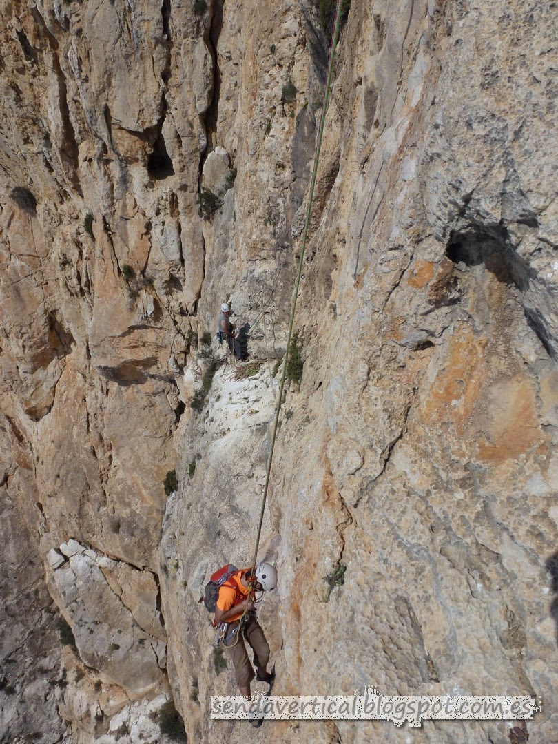 Temprano nos desayunamos y preparamos para hacer el "Espolón Central" (420m, V) del Puig Campana. Ésta es una vía muy guapa que ya había realizado hace 10 años con Coto, y sabía que nos dejaría un gran sabor de boca.